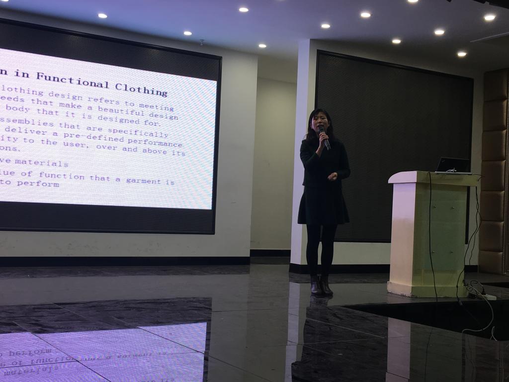 报告中,曹薇教授首先对功能性服装进行了基本介绍,功能性服装是针对功能性要求对服装进行再设计,因此此类服装质量和采用技术要求较高,功能性服装包括具有科学技术功能的在特殊环境下具有防护作用的作业服装。此次讲座中,曹薇老师通过赛车服这类具有特殊性功能性服装为例,通过该类型服装的大数据分析、科研课题内容让学生认识到功能性服装的特征,进而对服装的功能性融入产生深刻的认识与理解。曹薇老师对功能性服装的发展前景做了总结分析。市场上对此类服装的需求量会比较膨大,尤其是经济发展比较迅速的地区。在中国有几家专业生产设计此类服装的生产厂家,但价格都不低,因为开设此项目服装要综合各方严格的因素,对服装的面料要求也会比较高。