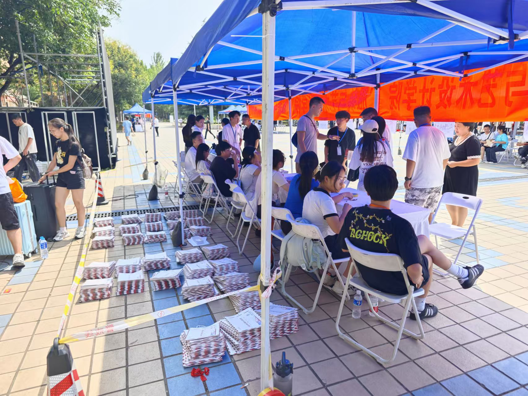 迎新现场,热情洋溢的氛围感染着每一个人。师生志愿者们身着统一服装,佩戴工作牌,以饱满的热情迎接新生的到来。他们主动上前帮忙搬运行李,耐心解答新生的问题,为新生提供周到的服务。从报到点到宿舍,一路上都能看到志愿者们忙碌的身影。