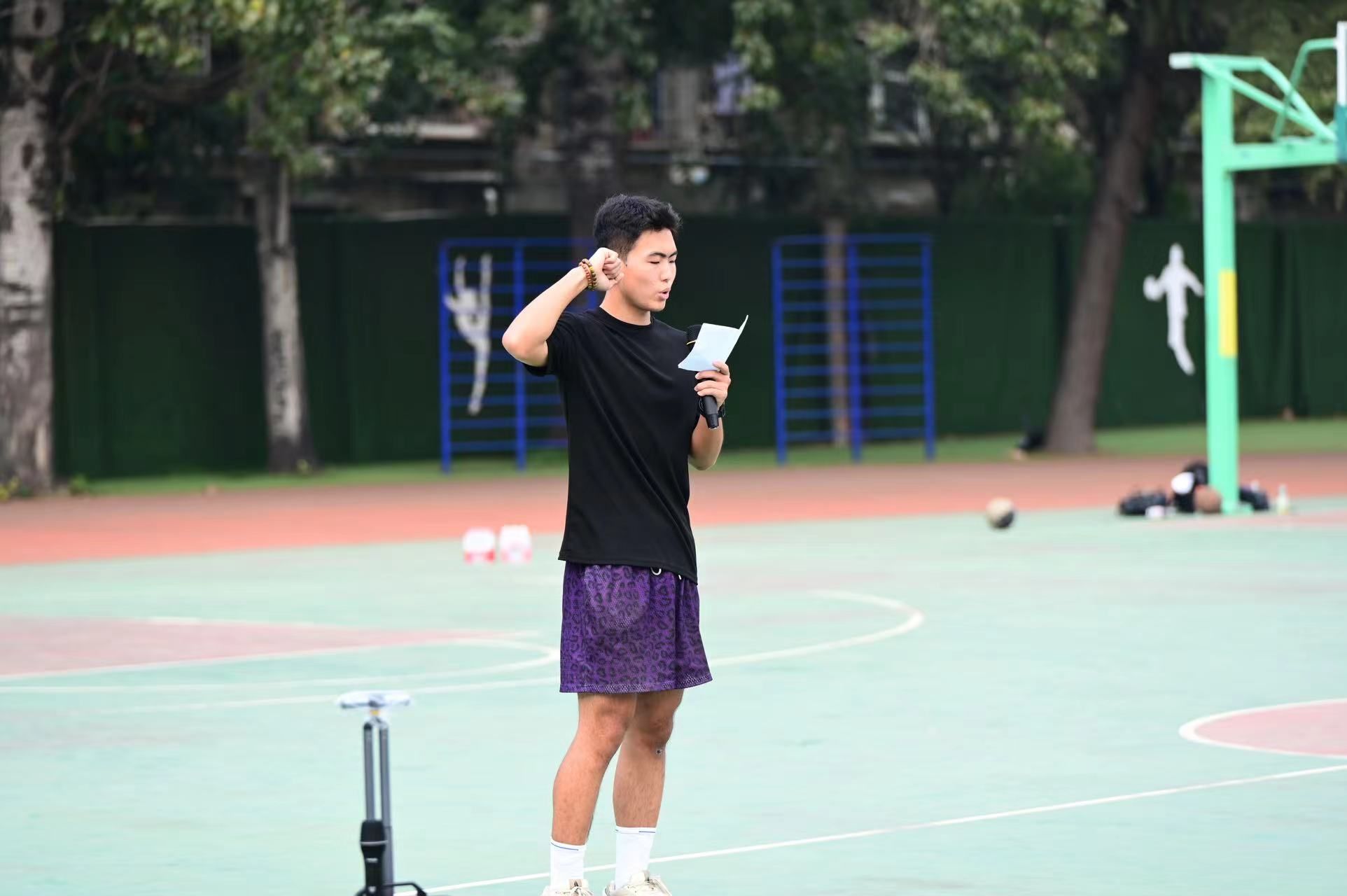 40周年院庆系列活动暨师生篮球友谊赛在金花校区篮球场正式开幕。参加开幕式的有教师代表队、各年级学生代表队、学工办教师和学生会体育部全体工作人员。开幕式上,2023级本科生巴晨旭同学现场演唱了动听的歌曲《找自己》。紧接着,运动员代表和裁判员代表也进行了庄严宣誓。开幕式最后,院庆总策划、教师代表龚鑫为本次比赛致辞,他说到,本次篮球赛是黑料网