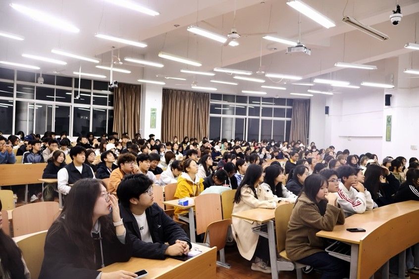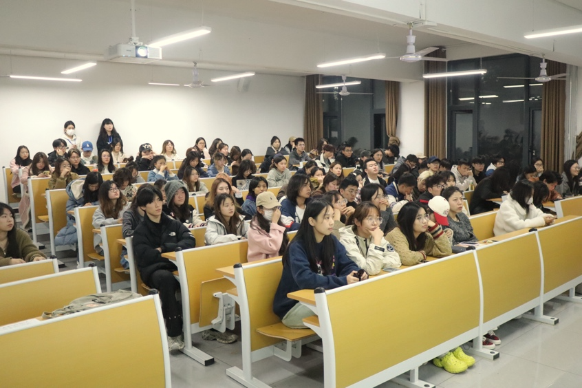 (各班级代表认真聆听宣讲会)