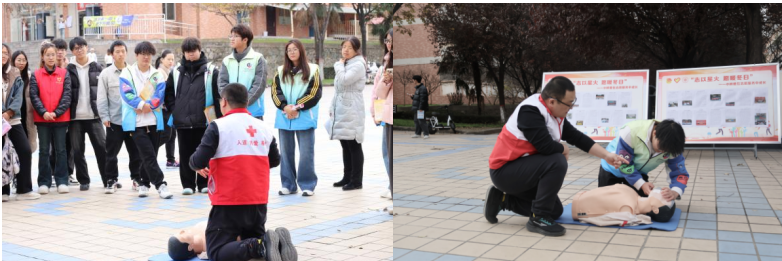 中午,临潼校区中心广场举行了“扶危拯急,救在身边”急救知识宣传活动。西安市临潼区红十字会宋世君、薛津,以及24级辅导员王盼、姜萌出席本次活动。宋世君为大家进行了心肺复苏路演展示,详细讲解了急救相关知识。活动期间,师生们积极报名参与实践演示,通过实操逐步掌握了心肺复苏的正确步骤和技巧,加深了对急救知识的理解和掌握。活动最后,宋世君表示:“急救知识不仅是一种技能,更是一种责任,在关键时刻,我们每个人都可能成为他人的生命守护者。”