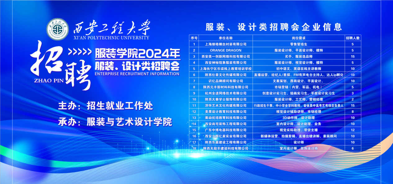 承办的“2024年服装类、设计类专场招聘会”在金花校区成功举行。此次招聘会邀请了省内的18家服装、设计类专业对口企业,为同学们提供了一个展示自我、对接企业的宝贵平台。