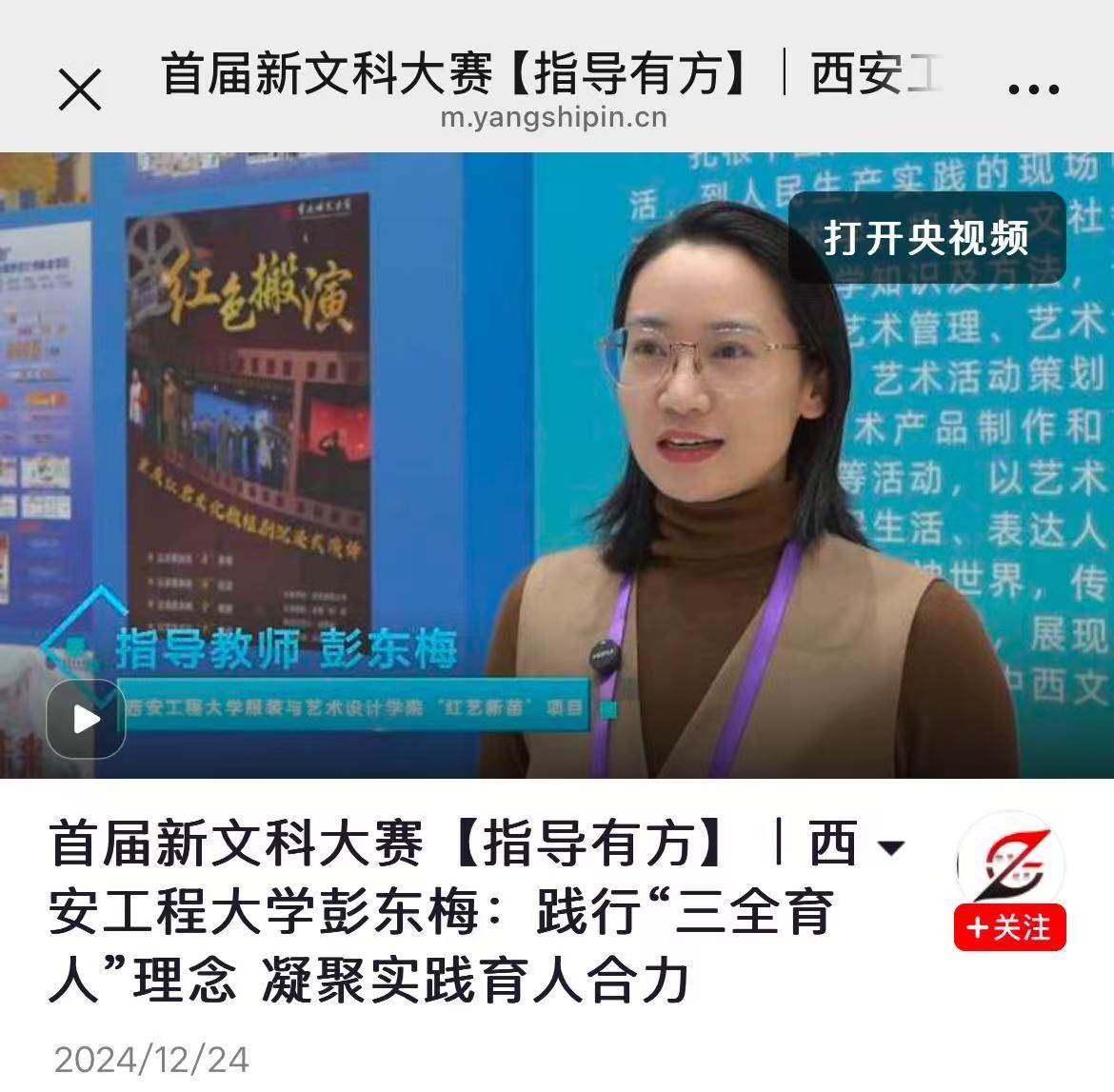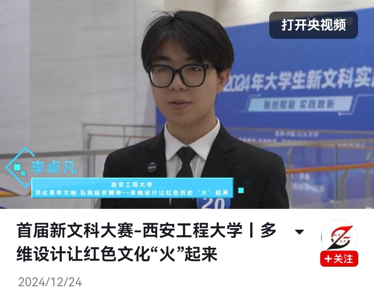 刘敏两位教师共同指导,彭冬梅及其团队成员李卓凡同学代表团队接受央视频APP教育视界栏目采访,深入讲解红色文化多维设计成果。