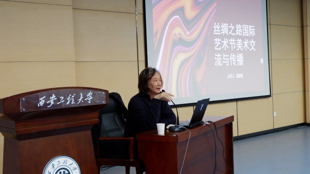 讲座二:丝绸之路国际艺术节交流与传播。2025年11月5日,西安建筑科技大学蔺宝钢教授以“丝绸之路国际艺术节交流与传播”为题进行分享。蔺教授深入解读了丝绸之路国际艺术节作为文化交流平台的重要意义,为师生提供了艺术跨界与国际传播的新视角。他结合国家发展战略指出,在设计学成为交叉学科的背景下,从业者应拓宽视野,关注时代需求,在工业设计、环境艺术、服装设计、艺术等领域肩负起更大的社会责任。两场讲座为师生带来了前沿的学术视野,激发了对专业发展的新思考。