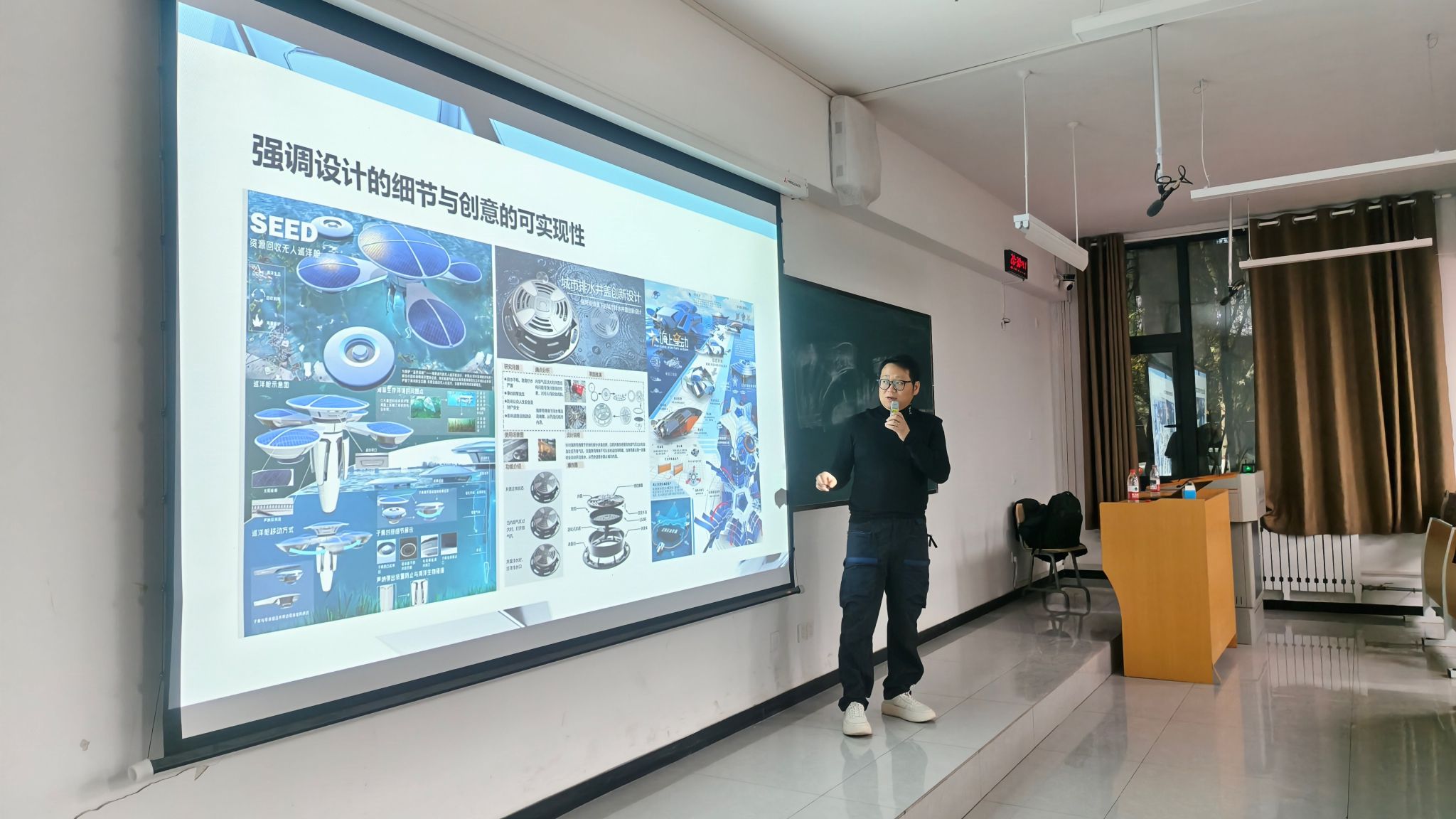 王馨深入剖析了产品设计领域的前沿趋势,针对学生竞赛中面临的实际问题,从视野拓展、选题策略与版面表达等维度提供了系统指导。他提出的三项设计视野拓展路径,为同学们带来了深刻启发。