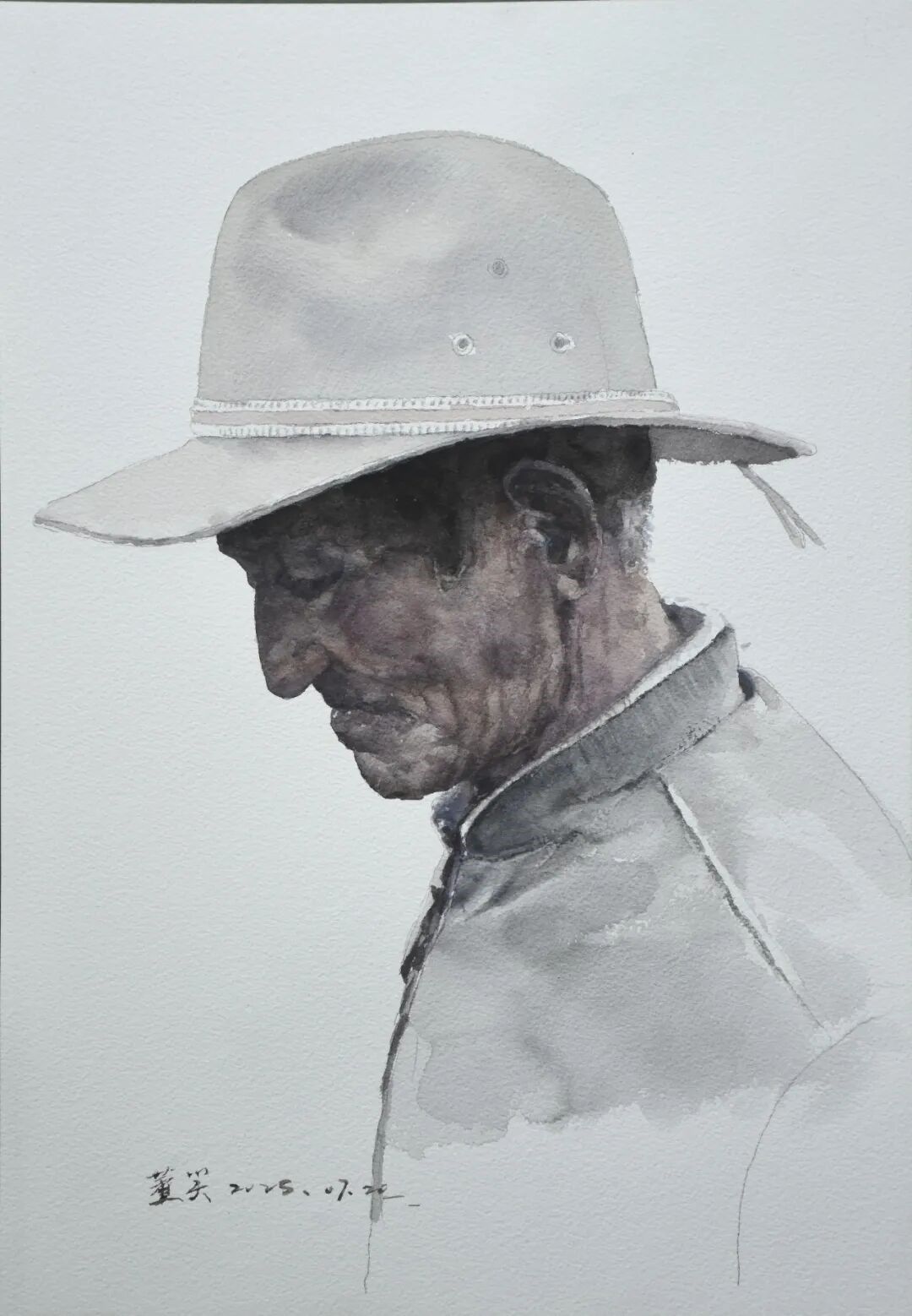董笑《行者》水彩画 36x54cm