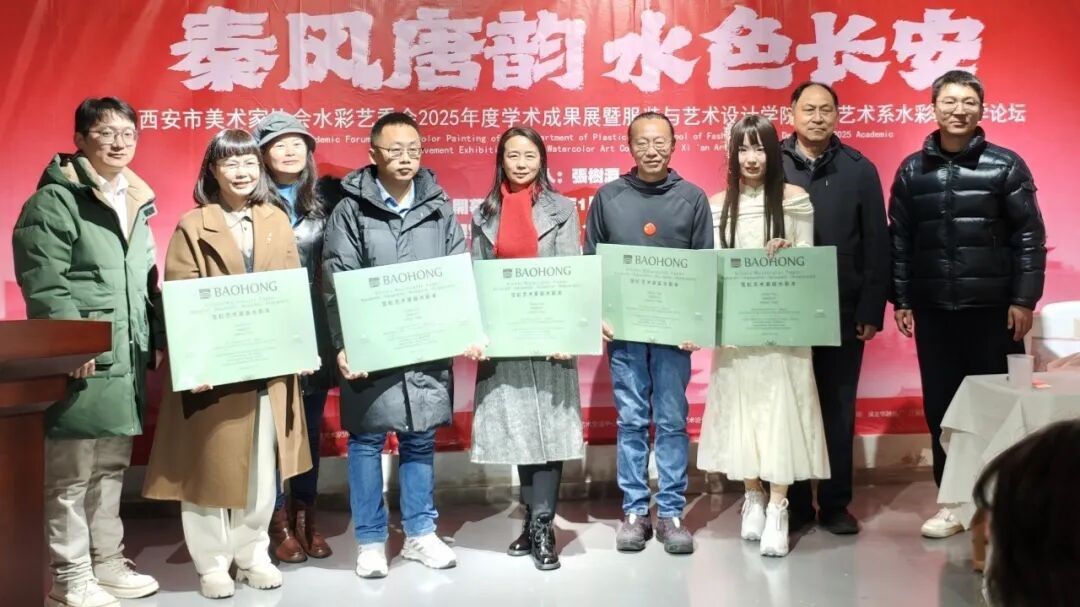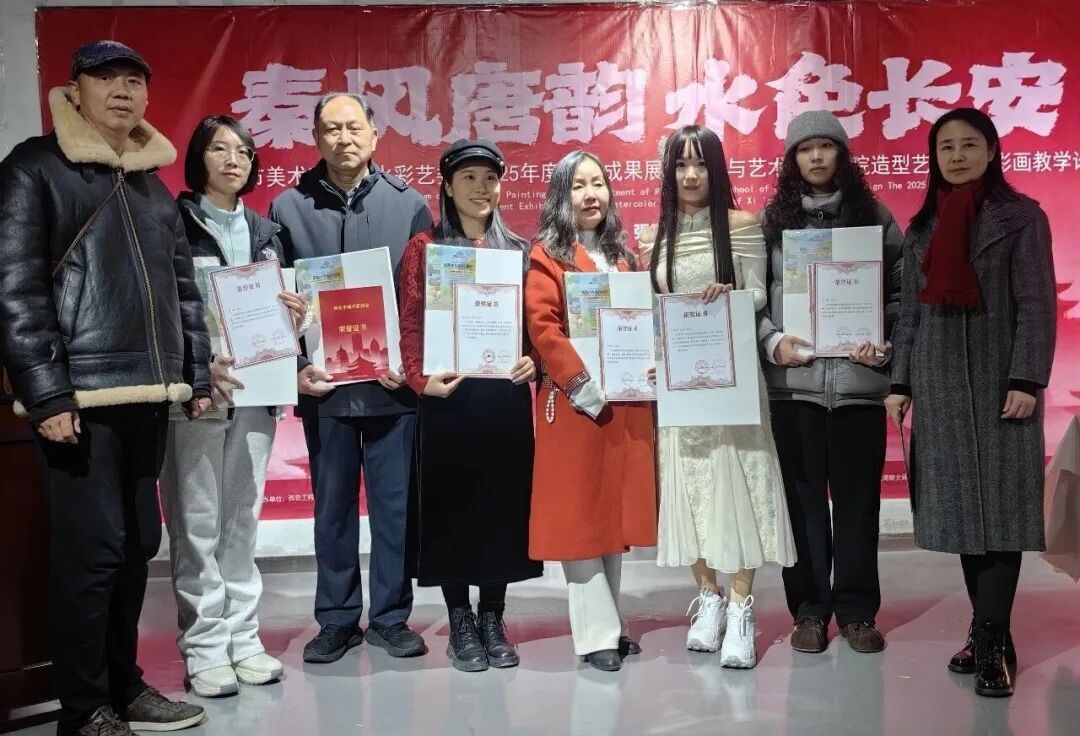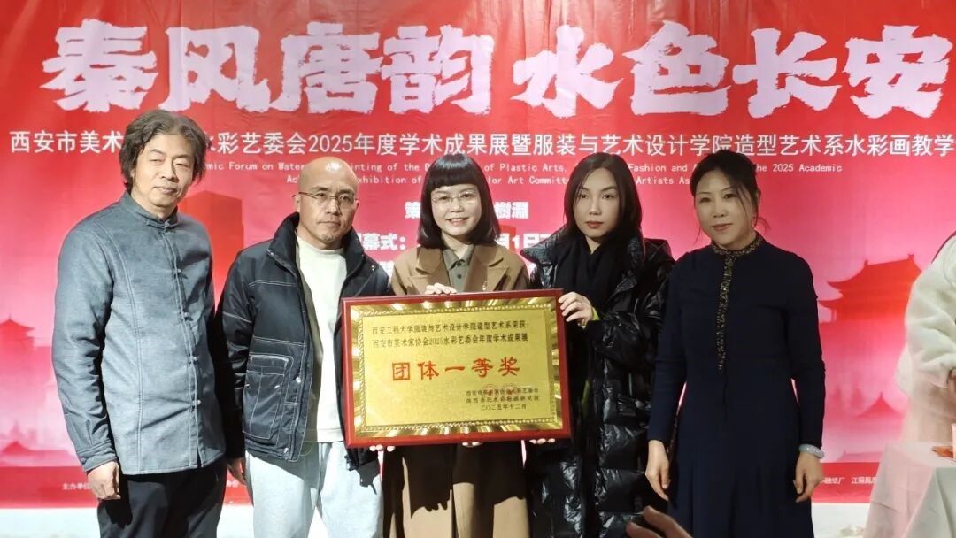 造型艺术系被评为“西安市美术家协会水彩艺委会2025年度学术成果展”团体一等奖。现场嘉宾分别为获奖单位、作者颁发了奖品和证书。本次展览将持续展出至1月20日。