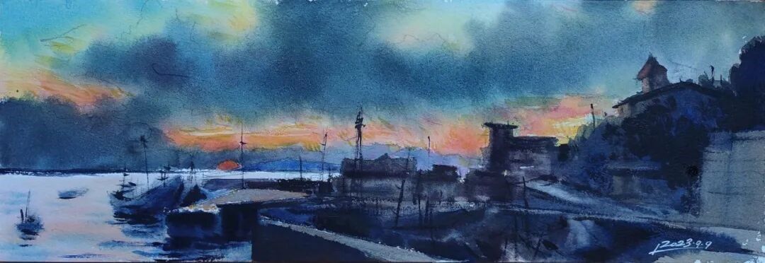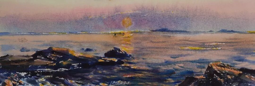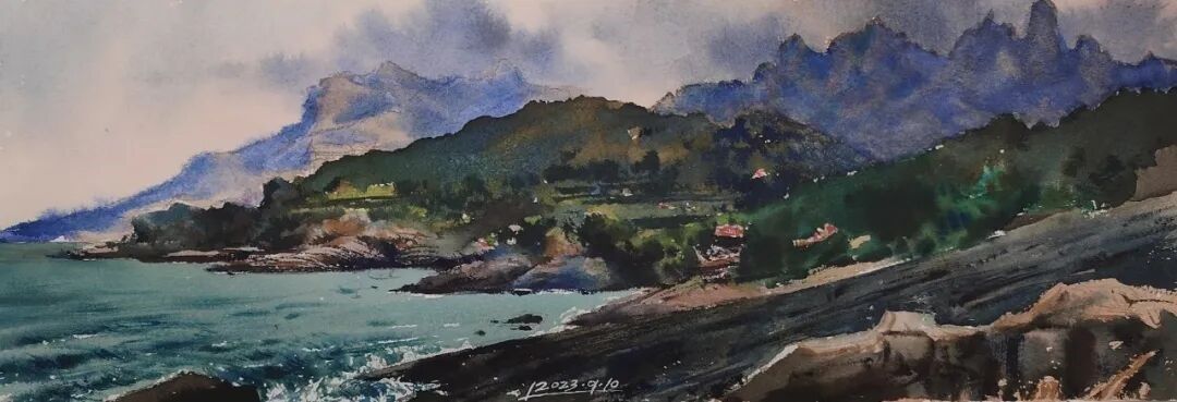 刘波《仰口海风系列》纸本水彩 35x16cmx4