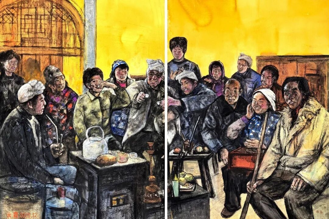 张云霞《正月里的乡亲们》水彩150X108cm