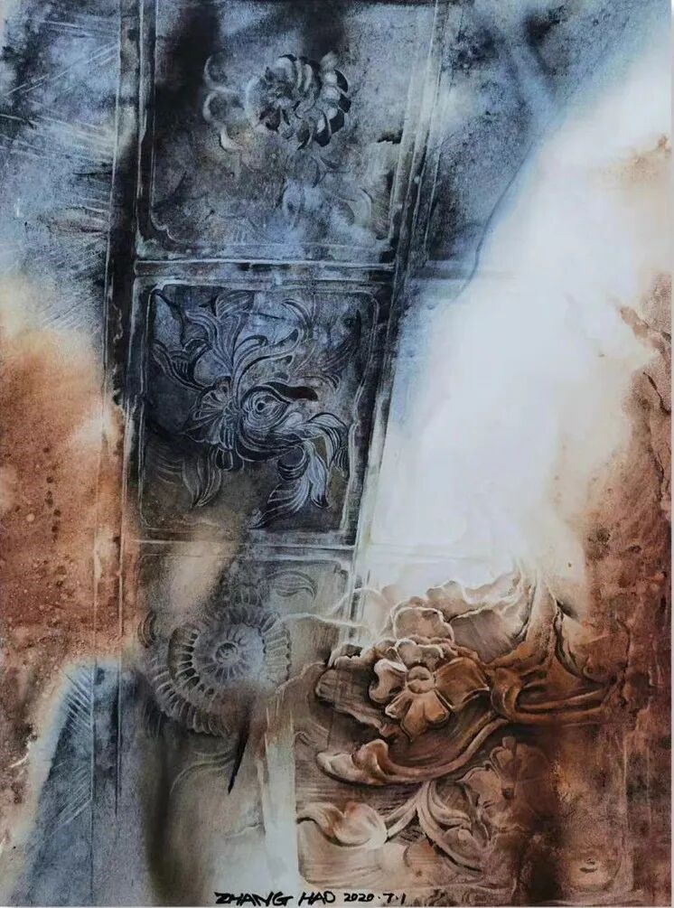张昊《安塞石窟遗韵》水彩46×63cm2020