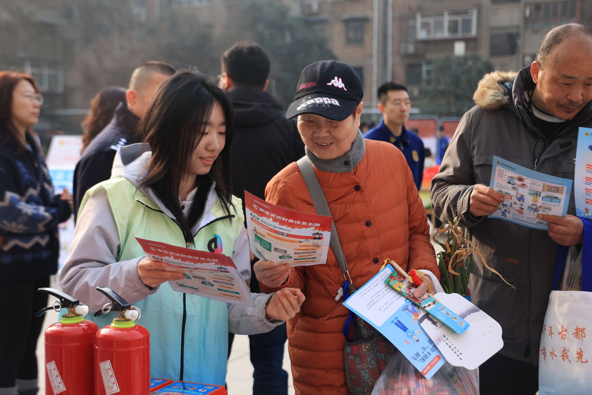 (志愿者向居民宣传消防知识)