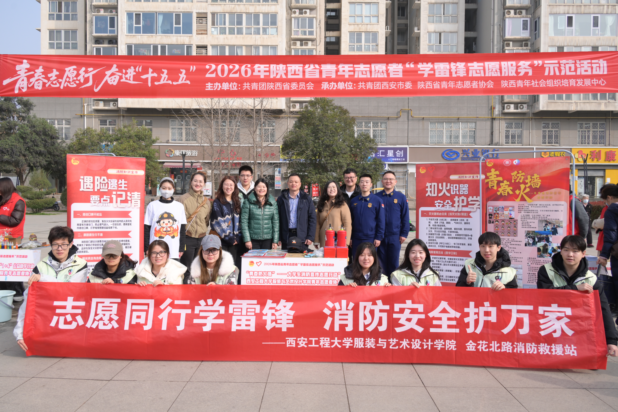 上午9时,2026年陕西青年志愿者“学雷锋志愿服务”示范活动在西安市碑林区太乙路街道火车头体育馆广场率先开展。校团委副书记凌旭、专职团干李梦琦、服装黑料网