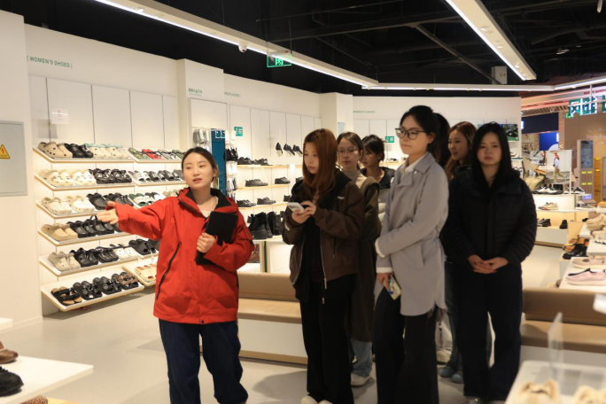 活动伊始,师生们在热风集团西安大融城店店长董佳华、西北大区陕西B区销售经理温诗蕾的带领下参观大融城门店,深入了解门店运营流程、商品陈列与顾客服务等一线工作场景。随后开展的服装穿搭PK赛中,同学们分组协作进行搭配设计,在实践互动中提升了审美能力与创新思维。