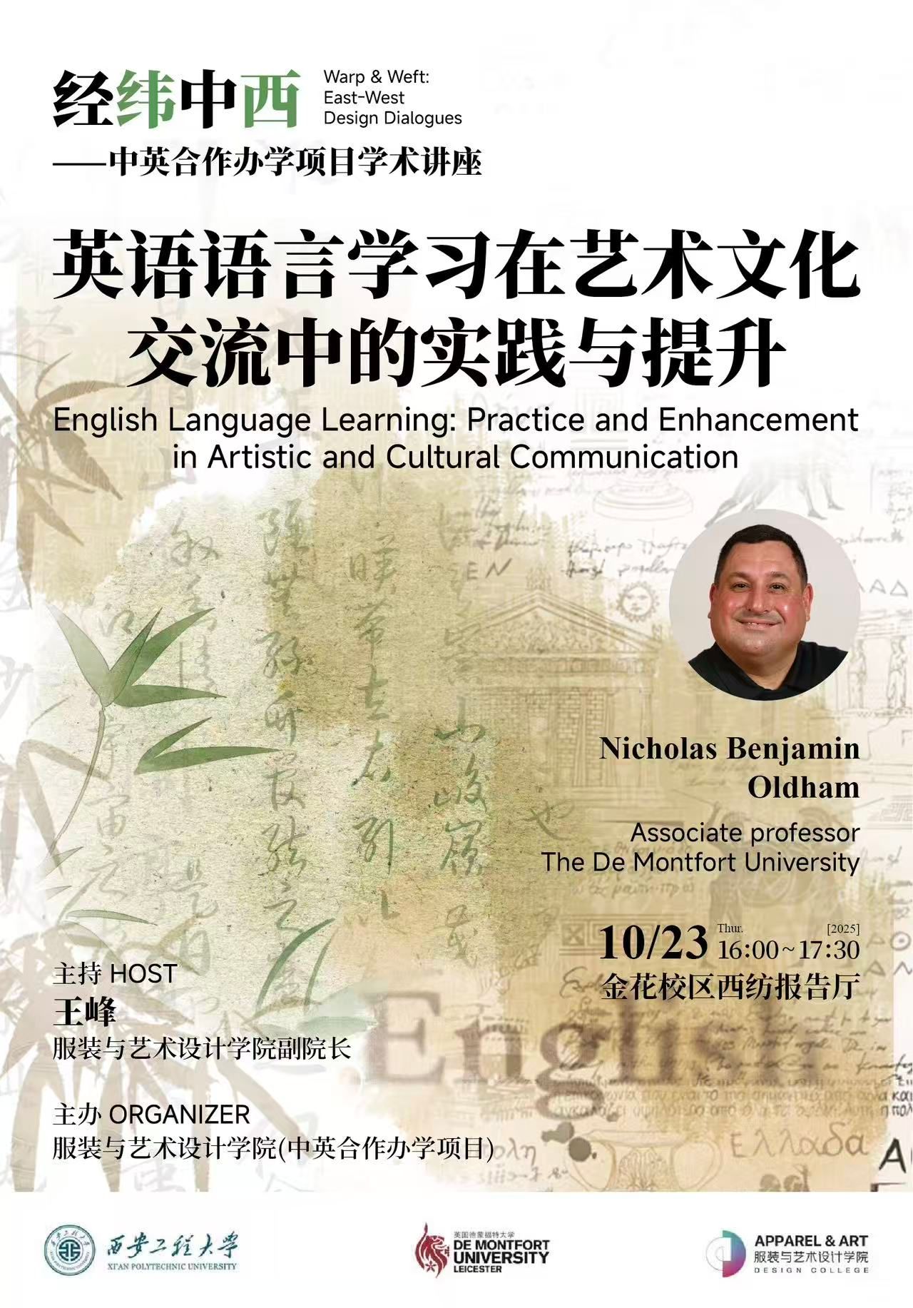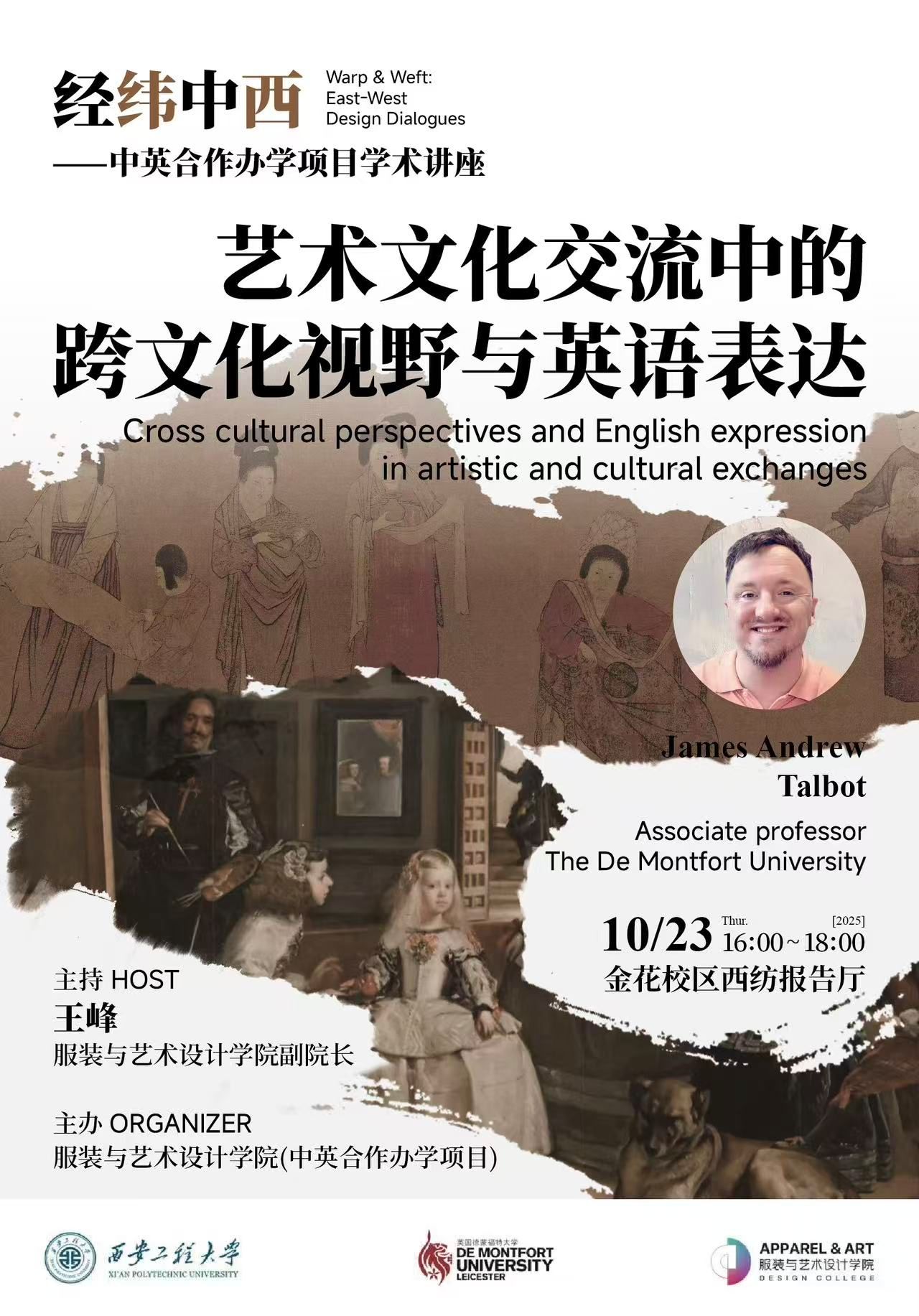 讲座预告|服装黑料网 将于10月23日(周四)16:00-18:00在金花校区西纺报告厅举办经纬中西—中英合作办学项目学术讲座,主要分为艺术文化交流与英语语言学习和艺术文化交流中的跨文化视野与英语表达两个板块进行全英文讲座,欢迎大家讨论交流!