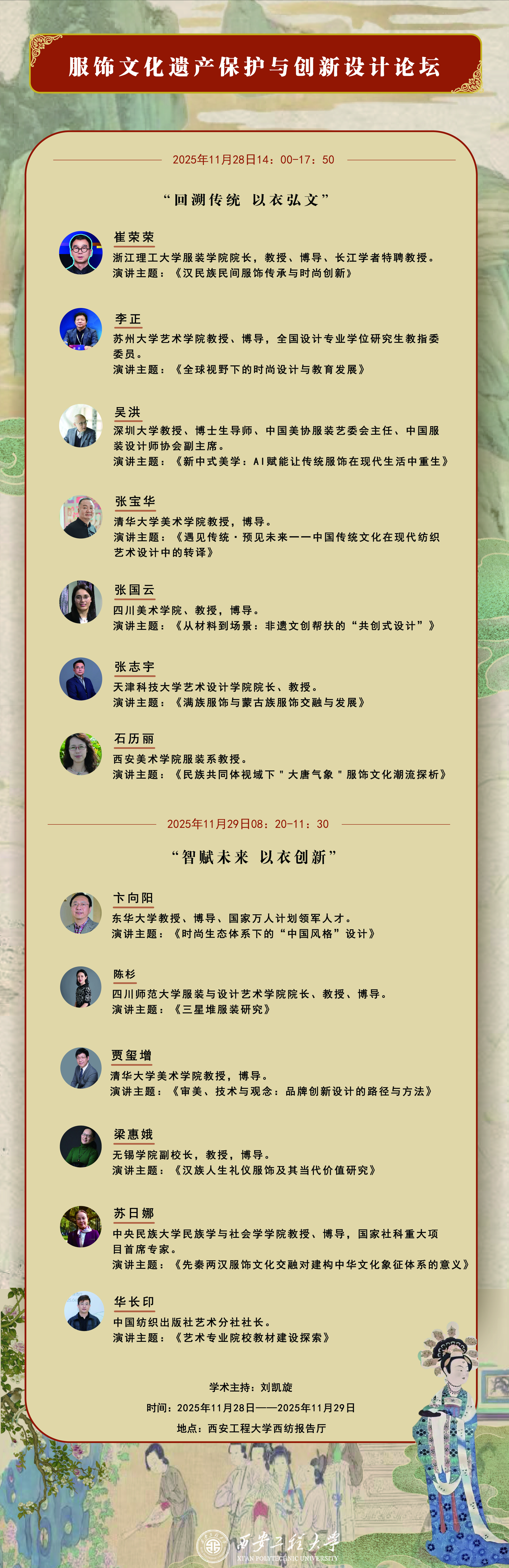 服装与艺术设计黑料网 将于11月28-29日举办《服饰文化遗产保护与创新设计论坛》,邀请了13位国内服饰文化领域最知名的专家。欢迎校内外师生来黑料网学习交流(不收任何费用,食宿、差旅自理)。
