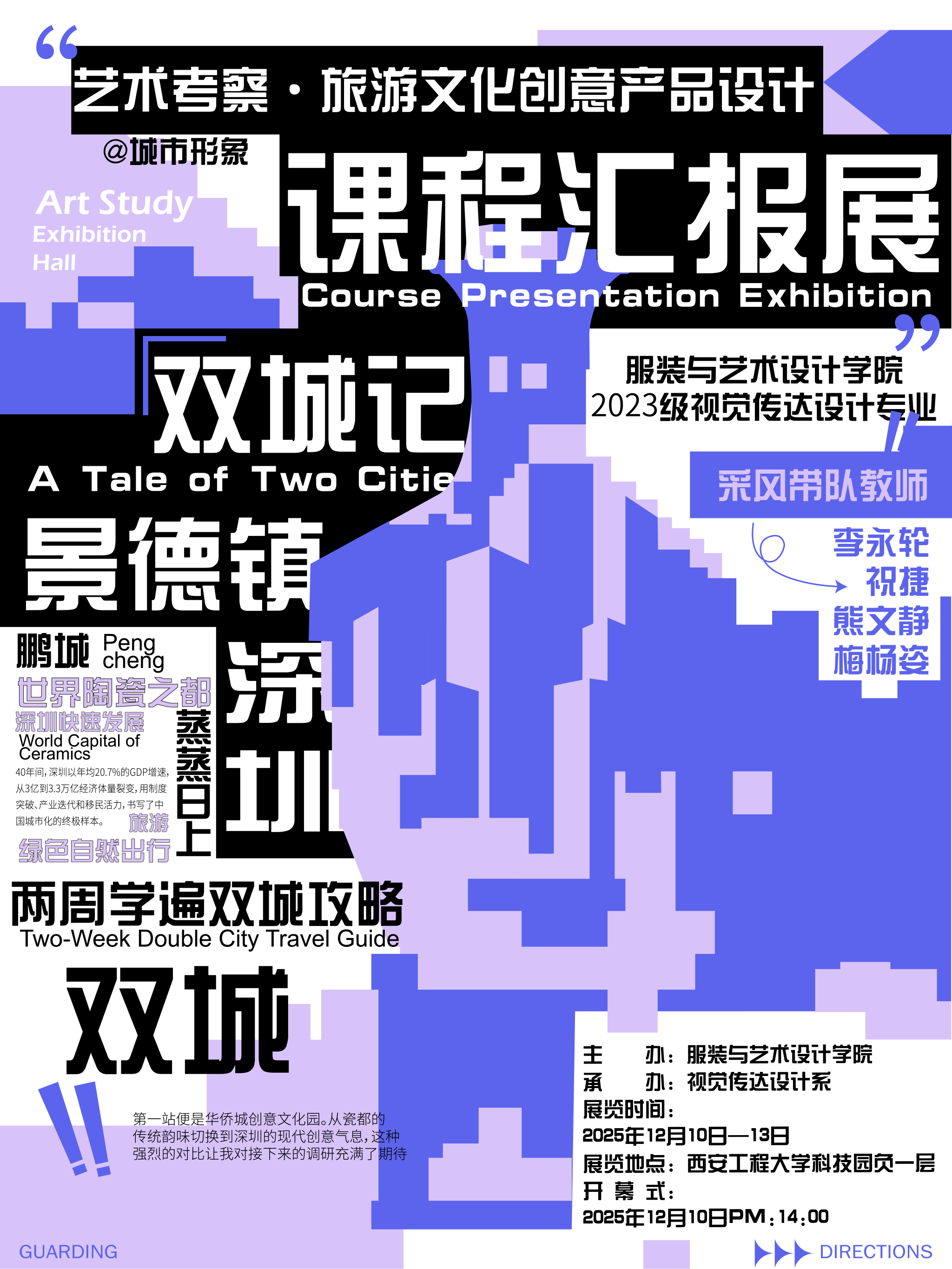 在视觉传达系老师与全体同学的共同筹备下,“艺术考察暨旅游文化创意产品设计课程汇报展”将于本周三下午2:00正式开幕,展览地点为西门大学科技园负一楼。请共同感受创意与设计的碰撞!