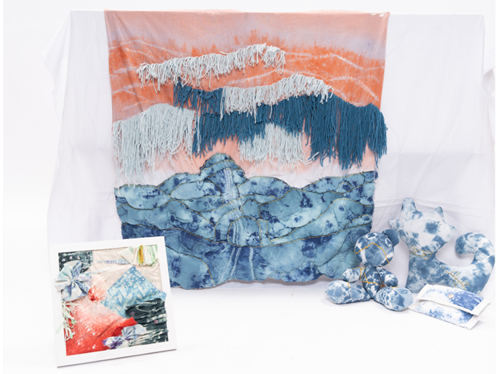产品设计系21级1,2,3,4班《绞缬与染色课程》圆满结束。该课程系统性地训练学生运用纺织面料掌握染色工艺,在实践中不断提升染色技能,持续探索创新的设计制作理念。课程内容分为两个版块:前者以传承传统纹样样式为中心展开设计与制作,后者以中国山水画意象为中心进行课题探索,二者皆涵盖有丰富的衍生品制作内容。课堂上学生积极传承传统手工艺术的优势,深入探索现代社会的审美风尚,以勃发的文化自信与创新意识实践课程的各个环节,经过绘制纹样、捆扎面料、防染作品、制作成品等工序,学生提升了自身的艺术创造力和动手能力,增强了民族文化的自豪感。