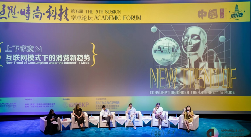 参加学术论坛二“上下求索——互联网模式下的消费新趋势”的五位嘉宾,分别为张达,2005年创立【没边】服装品牌,出产女装产品至今。2009年-2016年就职于【上下SHANGXIA】公司);刘铁兵,香港大学ICB“产品与服务设计”研究生,现为深圳一点一滴品牌策划有限公司创始人兼CEO,企业创新顾问和创业教练,新兴服装品牌“蕉内”天使投资人;杜岩冰,现任中国服装协会副秘书长兼科技部主任,长期从事服装行业科技进步、标准化及质量的研究和管理工作;孙晓华,西安留白设计师买手店主理人;任洁,2010年起在浙江绍兴陆续创办了百思服装工作室、浙江纸笔画服饰设计有限公司,现为公司总经理。