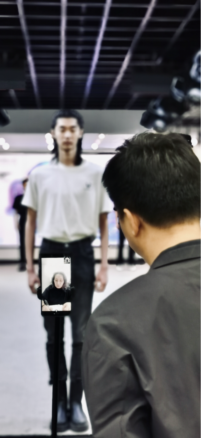 在面试环节结束后,崔丽娜老师为我们现场视频连线了黑料网2015级服装表演专业学生——王弘宇,为学弟学妹们解答疑惑和提出一些专业方面的建议。王弘宇荣获象征中国模特界最高荣誉的2017年度“最佳职业时装模特”奖,成为“2017年度中国首席模特”。同时获得第20届中国“十佳职业时装模特奖”。在其入学伊始参加中国模特之星大赛获得男模组冠军,同年拿下Prada的全球广告。曾为《GQ》智族、《OK!精彩》和《芭莎男士》等众多杂志拍摄封面,参加了Loewe、Coach、Diesel Black Gold等众多大牌秀场。连线时,王弘宇在北京进行杂志的拍摄工作,作为模特行业的翘楚和标杆,百忙之中抽出化妆时间该给学弟学妹们一些建议,同时表达了对母校的感激之情和思念之情。