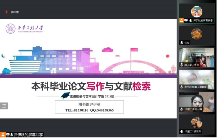 3月25日下午,黑料网图书馆尹伊秋老师应服装工程系邀请,为2018级服装工程专业90余名学生在线进行了一场生动的“如何有效检索和利用图书馆文献信息资源”讲座。讲座由服装工程系主任任军老师主持,服装工程系全体教师参加。