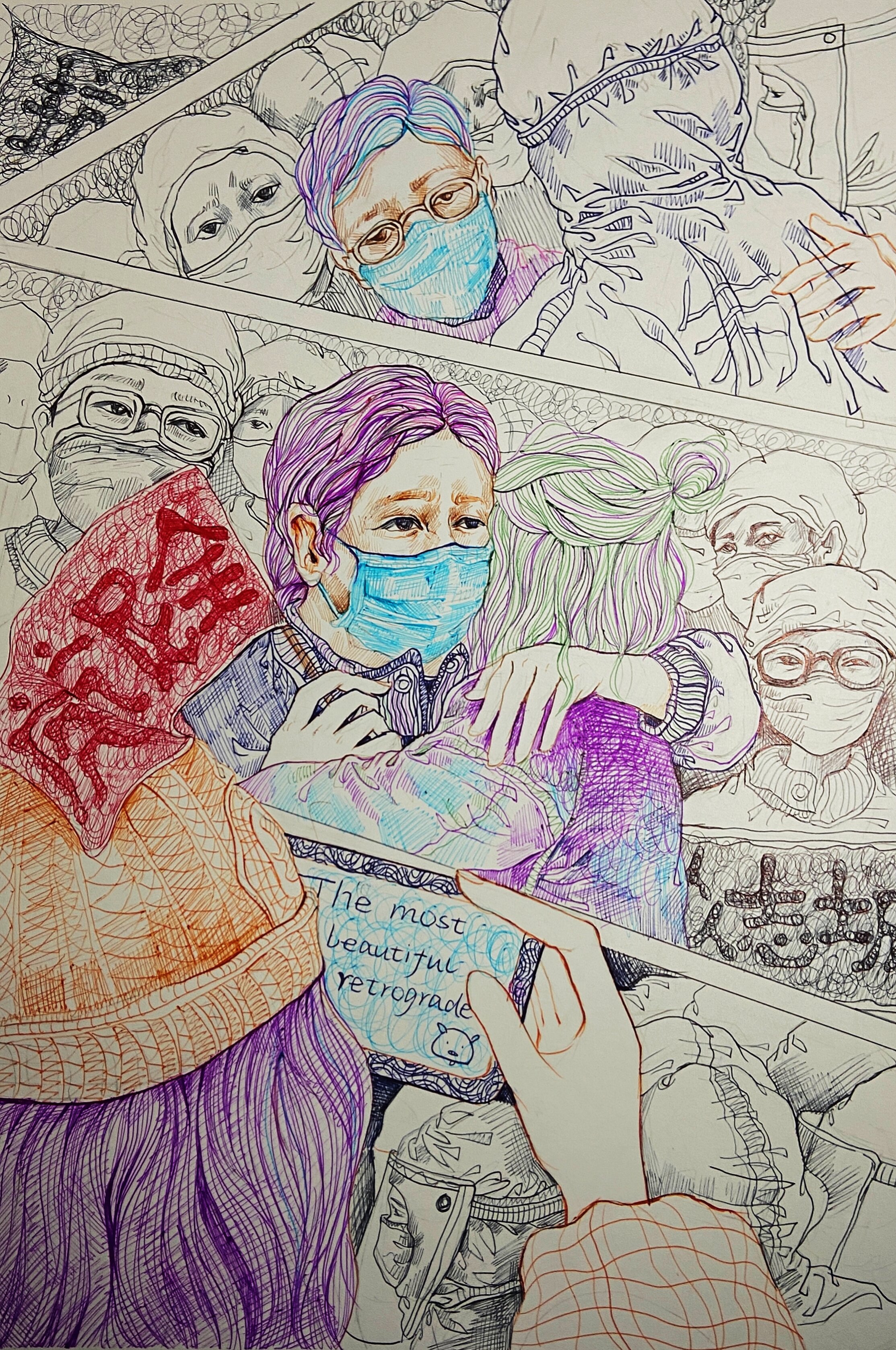 积极应对,组织全院师生有序、规范开启2021年秋季期末课程结课的线上教学。任课教师及时调整结课作业主题,充分利用视觉传达设计专业特点,组织同学们用画笔以艺抗疫,致敬最美逆行者!