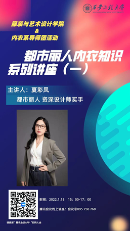 内衣工程系于1月18日在腾讯会议召开第一场专业报告会“都市丽人内衣知识系列讲座(一)”。此次会议邀请了都市丽人资深设计师买手夏彩凤女士为主讲人。会议由内衣系主任周捷教授主持,内衣系教师及全体内衣系本科生一百余人参加会议。