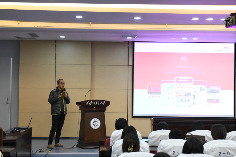 刘宏恩老师结合自身丰富的设计经历为与会同学讲解了当代UI视觉形象设计最前沿的时尚和技术,并将已经组织完善的“TAECO IP 3D形象设计大赛”的信息及参与形式进行了讲解动员。激励同学们以公开投稿形式展开设计实践,并聘请专业设计公司及行业知名设计师团队针对投稿作品进行初选及复选流程,评选过程公开透明,最终评选出一等奖一名,二等奖三等奖各两名。获奖者作品用于埃美思设计公司新产品研发,并对获奖者颁发获奖证书及奖金。