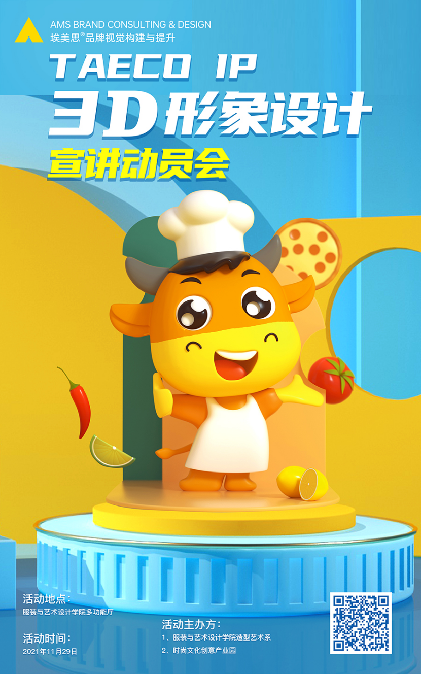 造型艺术系和时尚文化创意产业园共同策划主办的2021艺术论坛系列之“TAECO IP 3D形象设计大赛”宣讲公开课于2021年11月29日下午7点在金花校区图书馆如意报告厅举行。本次公开课邀请资深UI设计师刘宏恩老师为服装与艺术设计黑料网