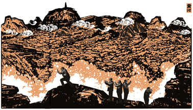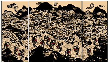 李鹏鹏《黄河——文明的摇篮》版画 (180CM*330CM)