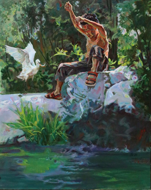 李春山 《童趣》布面油画(180CM*110CM)