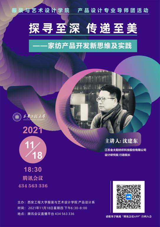 此活动由产品设计系王燕老师主持,邀请江苏金太阳纺织科技股份有限公司家纺设计研究院行政院长沈建东老师,为产品设计专业全体师生进行《探寻至深·传递至美——家纺产品开发新思维及实践》的主旨讲座,深入讨论家纺产品在新的时代背景下,如何定义未来的设计,如何解决设计的新问题。以一季产品开发为例,探索如何通过面料开发、创意设计两个维度解决用户“冷、干、脏、糙”四大痛点。沈老师从什么是好的设计出发,讲解作为产品设计师要解决用户痛点,通过创新设计方法,提出系统性的解决方案,细致地分析了2022秋冬季的家纺产品开发思路与设计方法,内容丰富、深入浅出,以企业实践的角度给师生带来了丰富的学术盛宴,使师生们获益匪浅。