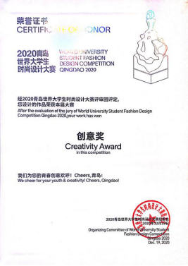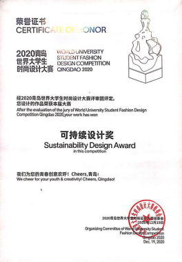 2017级服装与服饰设计(卓越)班何铭远获得《可持续设计奖》、2017级服装与服饰设计(卓越)班王涵博获得《创意奖》两个单项奖。