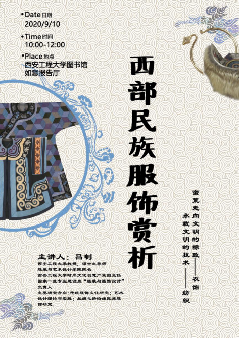 在本次讲座中吕钊老师重点围绕纺织服装博物馆的展品,讲述了中国西部民族民俗、民族服饰的特点,利用图文并茂的方式让学生直观的看到民族服饰形制及民族服饰文化的独特魅力。吕钊老师以纺织博物馆的建立伊始出发,讲述了博物馆建立的初衷,按历史发展进程讲述所收集的展品来源、结构与服装特点,从民族服装的老物件到整身的服装,全套的配饰,从收集服装的趣事到总结不同民族不同时期的服装特色,加之大量的服装图片展示,让学生们感受到服饰的历史发展,看到了很多民族服饰的特色与设计细节。