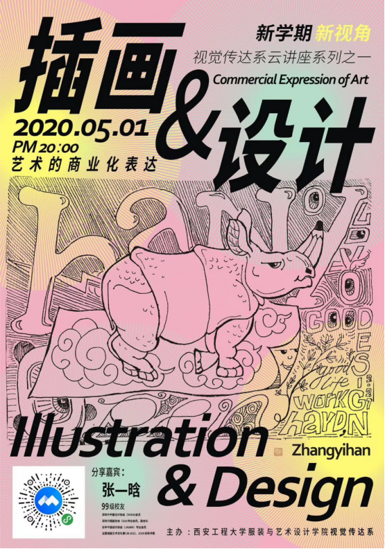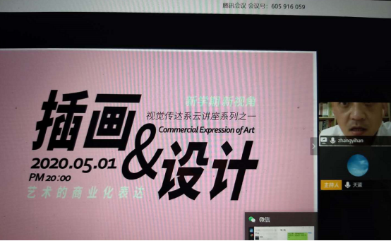 “停课不停学”的原则,特邀请99级校友、深圳插画协会副会长张一晗先生举办了本学期第一场题为《插画&设计 艺术的商业化表达》的专题云讲座,我院视觉传达系专业本科生、研究生及部分教师近250人参会,讲座由熊文静老师主持。